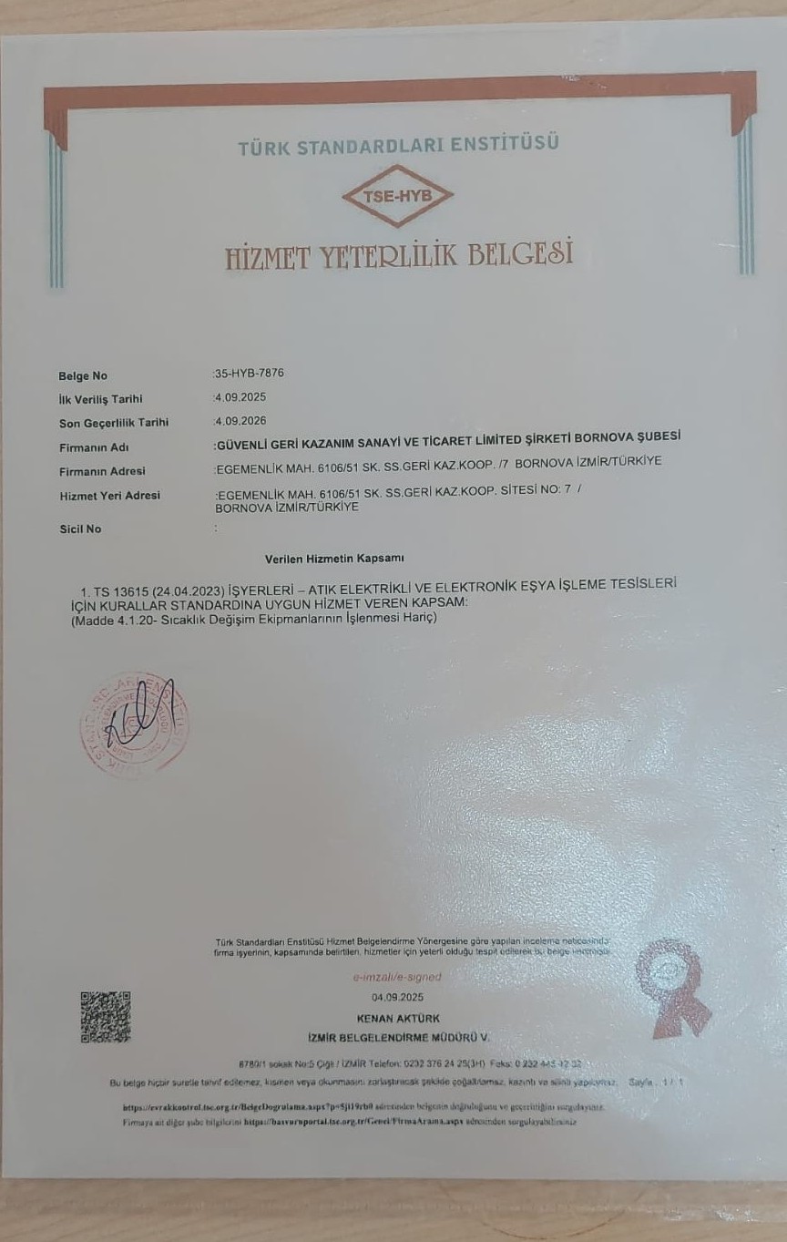 Güvenli Geri Kazanım sayesinde atıklarımızı sorunsuz bir şekilde geri dönüştürerek çevreye katkı sağlıyoruz. İşlerini titizlikle yapan bir ekip, her zaman destek olmaya hazırlar. Kesinlikle tavsiye ederim.