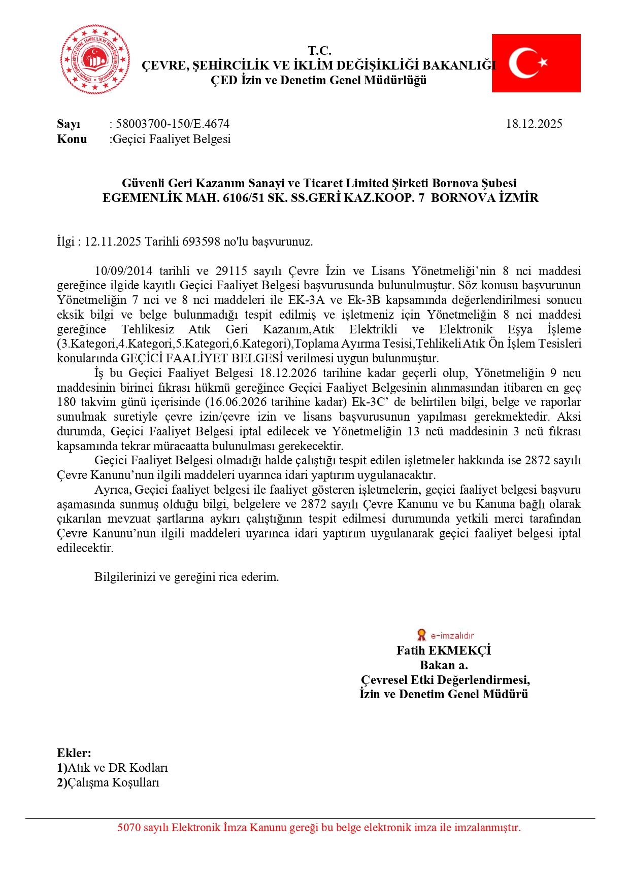 Güvenli Geri Kazanım olarak, çevre dostu hizmetlerimizi sunarken yasal düzenlemelere ve uluslararası standartlara tam uyum sağlıyoruz. Alanındaki uzmanlığımızı ve güvenilirliğimizi kanıtlayan belgelerimizle, sürdürülebilirlik ve profesyonellik anlayışımızı bir adım öteye taşıyoruz. Belgelerimiz, hizmetlerimizin kalitesini ve çevreye duyarlılığımızı yansıtmaktadır.
